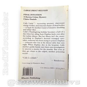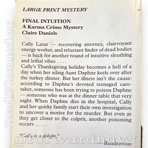 Immerse yourself in the gripping narrative of "Final Intuition," a Karma Crime Mystery by Claire Daniels, featuring large print for an enhanced reading experience. This NAVH (National Association for Visually Handicapped) approved paperback is in good condition, bearing the signs of use and potential bent pages, characteristic of beloved books.
