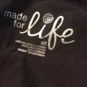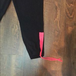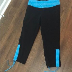 Made for Life brand workout pants. With elastic band across the top. Capri style with string to tie at the bottom. One blue color one coral color.