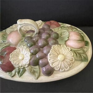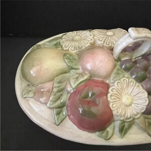 *Final Price* Ceramic Lattice Dish Flowers Fruit Hand Painted Glazed 1970s