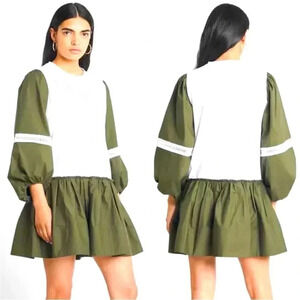 *Final Price* TANYA TAYLOR Kirstie Puff-Sleeve Olive Green X-Small NWT Oversized