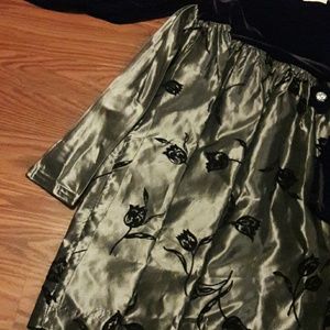 Velvet at the top and 100% acetate on the bottom. Cute trim.