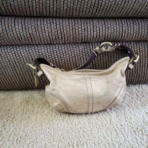 Limited edition bag is a suede-ish leather in a gorgeous shimmery gold. Has minor blemishes - see photos.