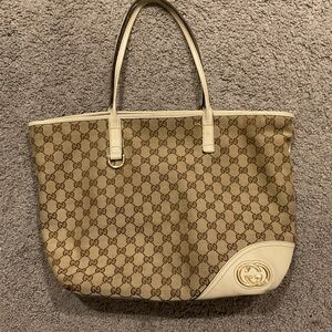 Final Sale! Gucci Britt Vintage Monogram Canvas Leather Tote Shoulder Purse