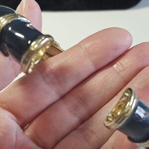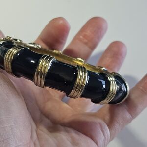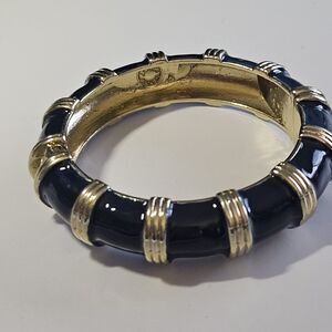 **Final Sale** J Crew Clamp Bangle Bamboo Look Blueberry Enamel Gold Tone Hinge
