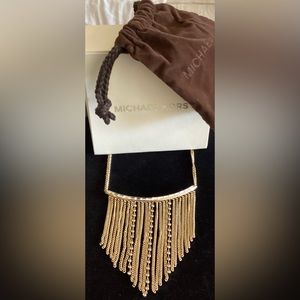 🚨Final Sale🚨 !! NIB Michael Kors Godtone Fringe Bib Necklace w/Crystals