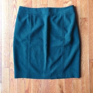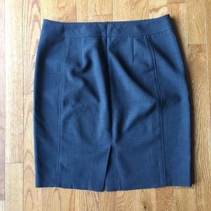 Perfect work skirt! LOFT pencil skirt in dark gray. Size 10 P! Worn a handful of times and in GUC. Zipper in and small slit in back. 62% polyester, 33% rayon, 5% spandex; wash cold and tumble dry low.