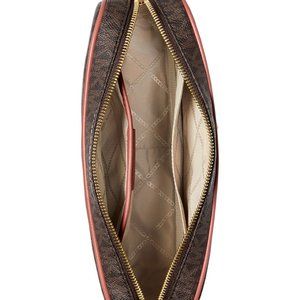 Stylish for weekend wandering or a day at the office, this MICHAEL Michael Kors crossbody features gleaming metallic hardware and signature logo for the win.
