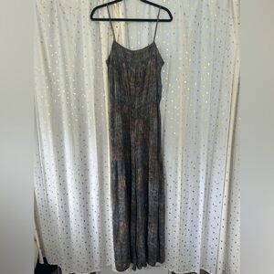 Final Touch Graphic Spaghetti Straps Smocked Back Wide Leg Palazzo Jumpsuit 1X