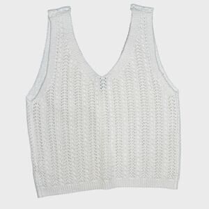 Final Touch Knit Button Vest White Cropped V Neck Layered Academia Style Y2K