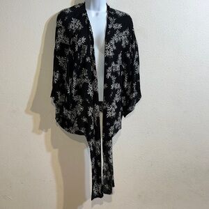 Super cute Swimsuit Cover Up, tropical print, wide bell sleeves, in good condition (it does have a piece of hem undone, cannot tell when you tie it up in the front, can be sewn, price reflects flaw)