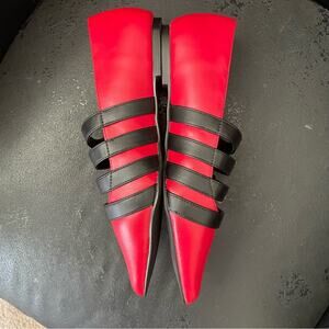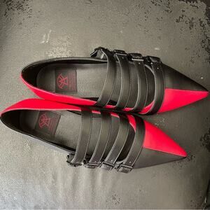 Final price* Strange Cult Coven flats in split black/red harlequin