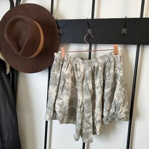 Final touch boutique green ivory tie dye flowy pull on boho shorts hippie