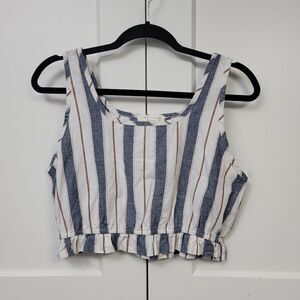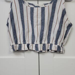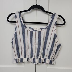 final touch striped crop tank Elastic hem 90% cotton 10% linen excellent preowned condition cat friendly home G