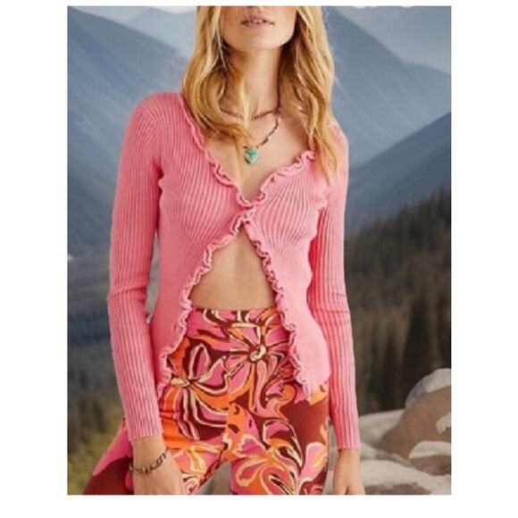 Find Me Now Charlie Ribbed Button Front Top Size M/L