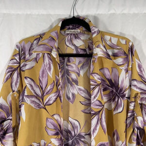 Find Me Plus Blouse Women's 1XL Yellow Floral 3/4 Sleeve Tie Front