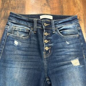 Great condition skinny jeans with a little stretch. Measure 13.5 inches across the waist laying flat and have a rise of 10 inches. The NC measures 29 inches.