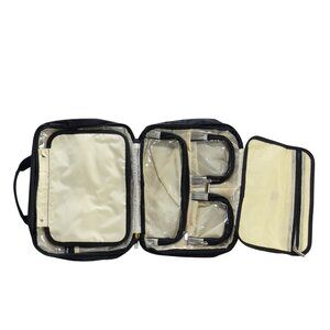 Findcozy Black Quilted Nylon Toiletry Bag Multiple Zipper Compartments Handles