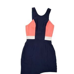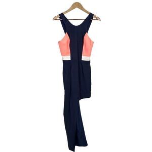 Finders Keepers Asymmetrical Maxi Mini Dress Navy Pink Extra Small