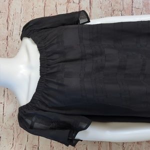 Chic black mini dress by Finders Keepers. Features a flowy silhouette and off-shoulder design. Perfect for any occasion.