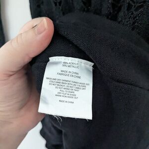 Black crochet shimmer fabric, open back with a back tie at the neckline, lined, long sleeve