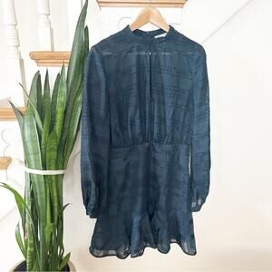 Finders Keepers Blue Long Sleeves Keyhole Neck Ruffle Hem Lights Go Out Dress