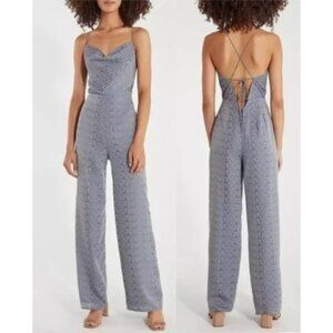 Finders Keepers Catalina Sleeveless Cowl Neck Wide Leg Navy Grey Jumpsuit Size 4
