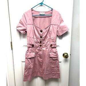 Finders Keepers Dress Pink Button Down Cargo Mini Cotton Stretch Mini Women's 8