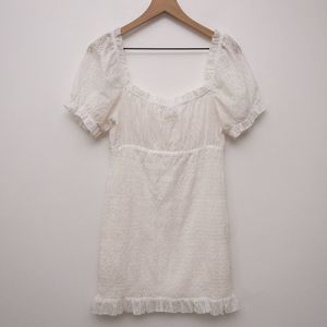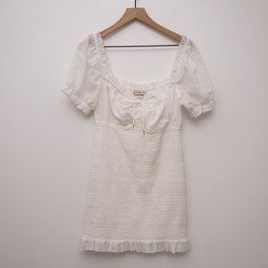 Finders Keepers Eva White Short Sleeve Smocked Mini Dress