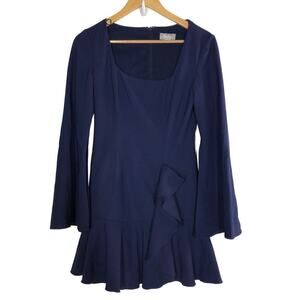 Finders Keepers Goodbye Dress Square Neck Bell Sleeve Ruffle Hem Mini Blue Small