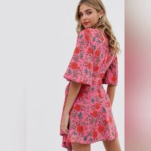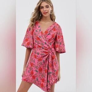 Finders Keepers Hana Mini Dress Pink/Fuchsia Floral Faux Wrap Size US 10 NWT