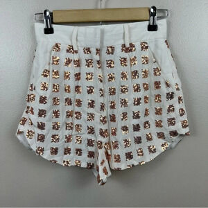 Finders Keepers Moment In Time Shorts Size XS Rose Gold Sequins High Rise White