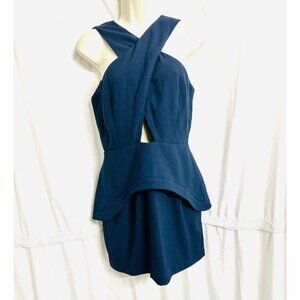 Finders Keepers Navy Blue Sleeveless Cross Front Cutout Peplum Knee Dress Size M