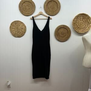 Finders Keepers Neutral Black Low Back Knit Stretch Sleeveless Midi Dress Medium