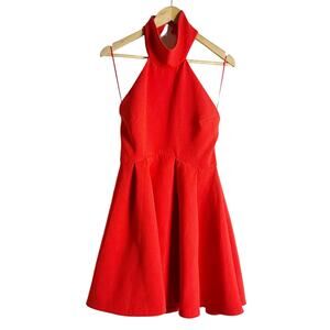 Finders Keepers Smoke Trails Red Open Back Halter Skater Mini Dress Size M
