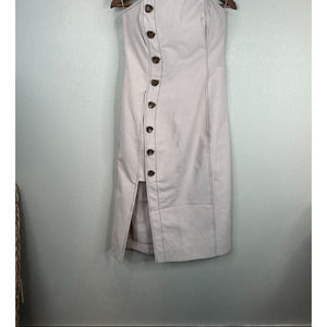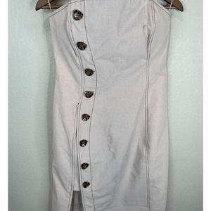 Finders Keepers Strapless Dress Large 8 Tan Beige Side Button Knee Length LUX