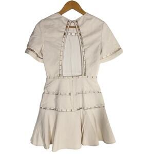 Finders Keepers Talisman Dress Metallic Ladder Cutout Open Back Mini Ivory Small