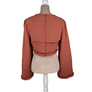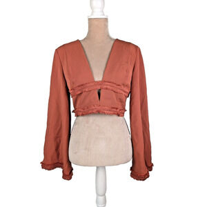 Finders Keepers Visions Large Crop Top Blouse Rust Red Bell Sleeve Fringed NWT