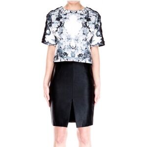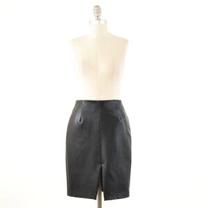 Finders Keepers Women’s Metallic Black Faux Leather Slit Front Sexy Pencil Skirt