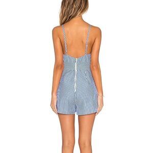 Finders Keepers Blue White Stripe Blow Your Mind Short Romper Waist Tie Sz L