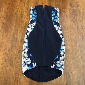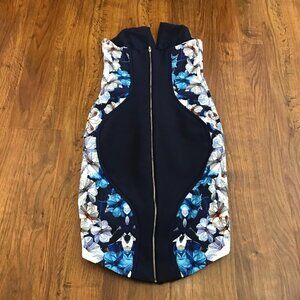Finder Keepers floral navy hourglass hi-low strapless dress