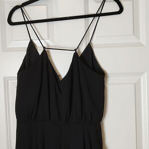 Finders Keepers Revolve The Someday Jumpsuit in black. This stunning jumpsuit features a set in waist, double V neckline with spaghetti strap detail, front slant pockets, and center back zipper closure. Fully lined. 100% polyester.