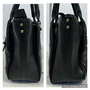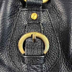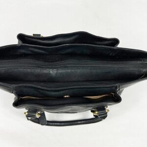 Findig Black Leather Dual Handle Gold Lining 3 Compartment Shoulder Bag 14” x 9”