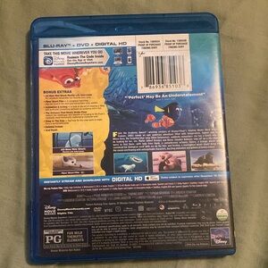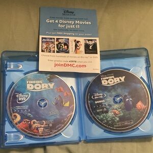 Disney Pixar Finding Dory Blu-ray, DVD, and Digital HD combo. Features vibrant blue and colorful ocean-themed cover art.