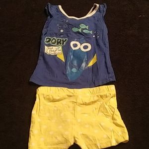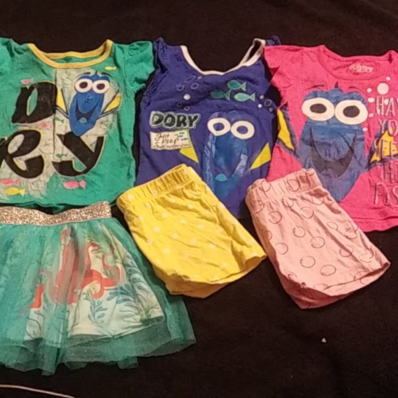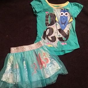Comes with a t-shirt/skirt outfit and 2 pair of pjs, a pink set and a blue set. Great for the child who likes to pick their clothes!
