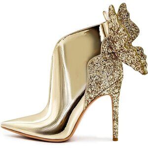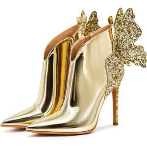 ✨ Findvell Ankle Boots Women Gold Microfiber Butterfly Stiletto High Heels Shoes