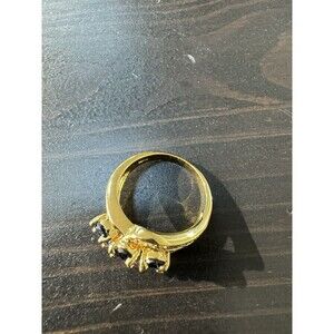 Radiating timeless sophistication, this fine stamped 10K gold ring features a striking royal blue three-stone design that captures light from every angle. Each stone is securely held in elegant claw settings, emphasizing brilliance and balance while adding a touch of regal allure.