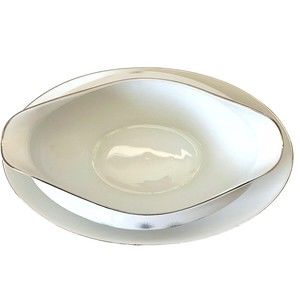 Fine China Creative Platinum Star Burst Gravy Boat w/ Attached Underplate Japan
