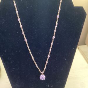 Fine Link Goldtone Crystal Necklace with Crystal Pendant