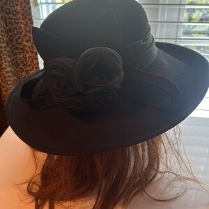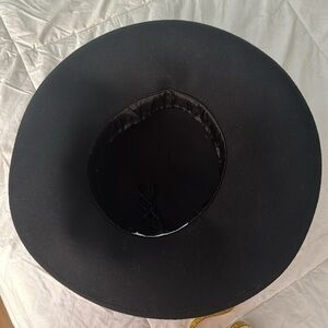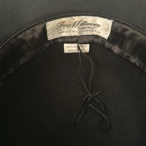 Has a drawstring inside so you can adjust it to the size of your head. 100% wool