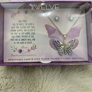 Fine Silver Plated Butterfly Cross Necklace and Earrings Set with Cubic Zirconia